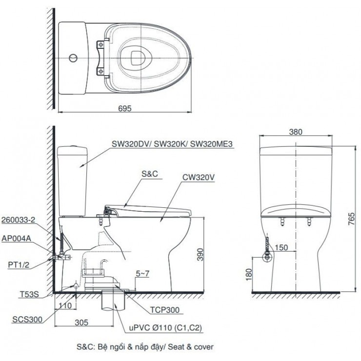 Thông tin bồn cầu TOTO CS300DW16Y1 nắp rửa điện tử