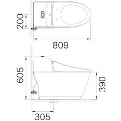 • Kích thước bồn cầu: 809 x 372 x 605 (dài x rộng x cao)